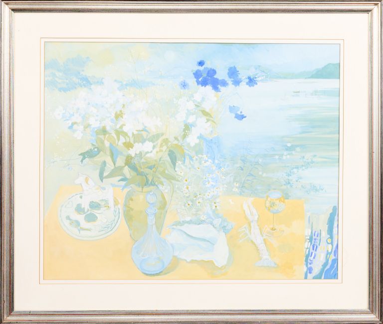 Partial label verso: The Torrance Gallery, Edinburgh Note: Irene May Halliday was born in Kingsmuir, Scotland and attended Duncan of Jordanstone College of Art in Dundee between 1948 and 1953, studying under Alberto Morrocco. From 1956-1979 she worked at Didsury College of Education becoming Head of Art and Design. She spent an academic year as a visiting professor at State University College, Buffalo, New York State from 1972 to 1973. She left full-time teaching at Manchester Polytechnic in 1979 but continued to teach summer schools in Alston, Hull, Lancashire and Harrogate. Irene Halliday was elected to the Royal Society of Watercolourists in 1955, she has exhibited at the RA, the Royal Scottish Academy, the Royal Glasgow Institute of Fine Arts and elsewhere in England, Scotland and the United States, and her work is held in several public galleries. She never moved far from Scottish painting and in 2002 returned to live in Arbroath inspired by the sea coast and land around her home.