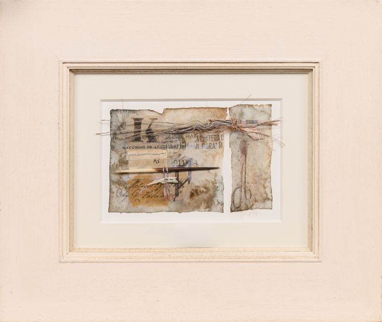 mixed media collage on paper, initialled, titled label verso mounted, framed and under glass