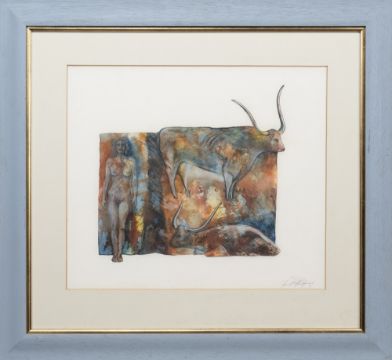 watercolour on paper, signed, titled verso mounted, framed and under glass image size 48cm x 55cm, overall size 78cm x 84cm Handwritten artist's label verso Label verso: Ancrum Gallery, Roxburghshire