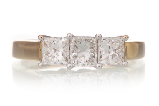 the princess cut diamonds totalling approximately 1.00 carat, in eighteen carat gold, size L F-G, VS1-VS2