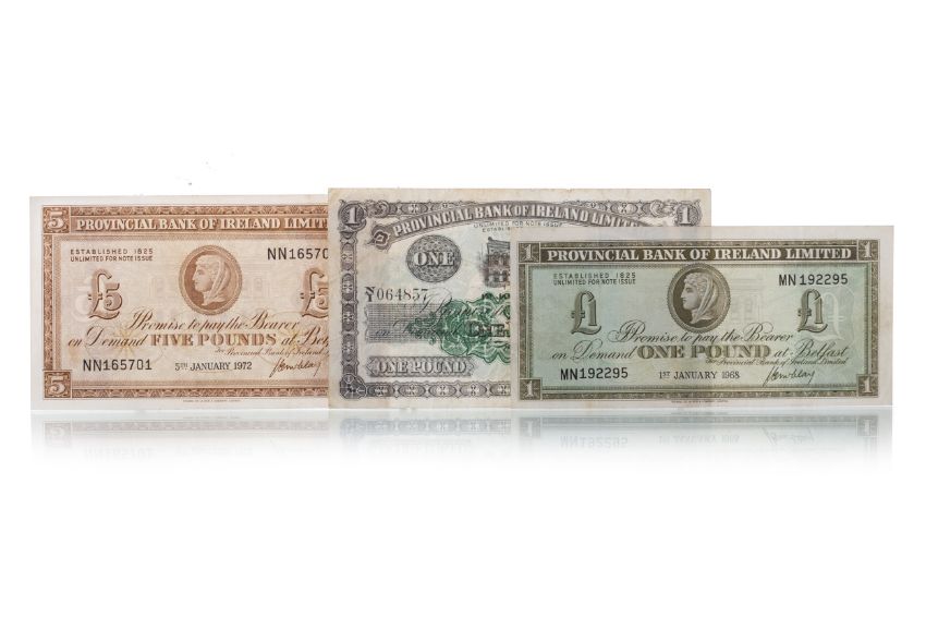 comprising one pound note dated 1946 and another dated 1968, along with a five pound note dated 1972