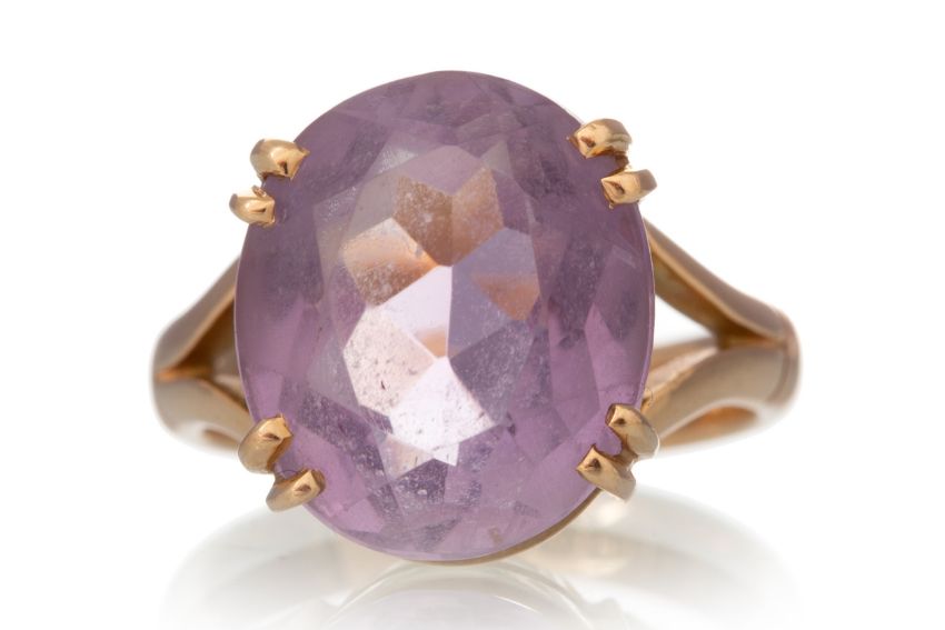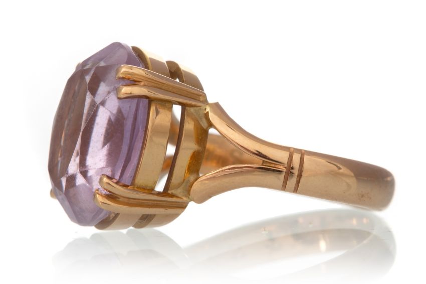 in eighteen carat gold, size K 1/2 6.8g Worn condition.  Requires cleaning.  Stone = 13.9mm