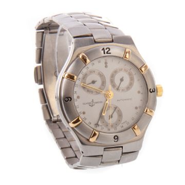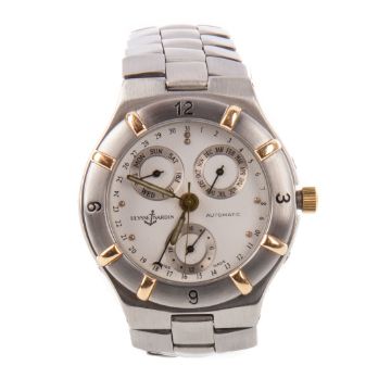 the round dial with three subsidiary dials, 36mm case, on a stainless steel bracelet, lacking box and papers MOVEMENT: Ticking at present. WEAR: Generally worn. Noticeable wear to the hands.