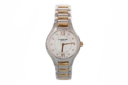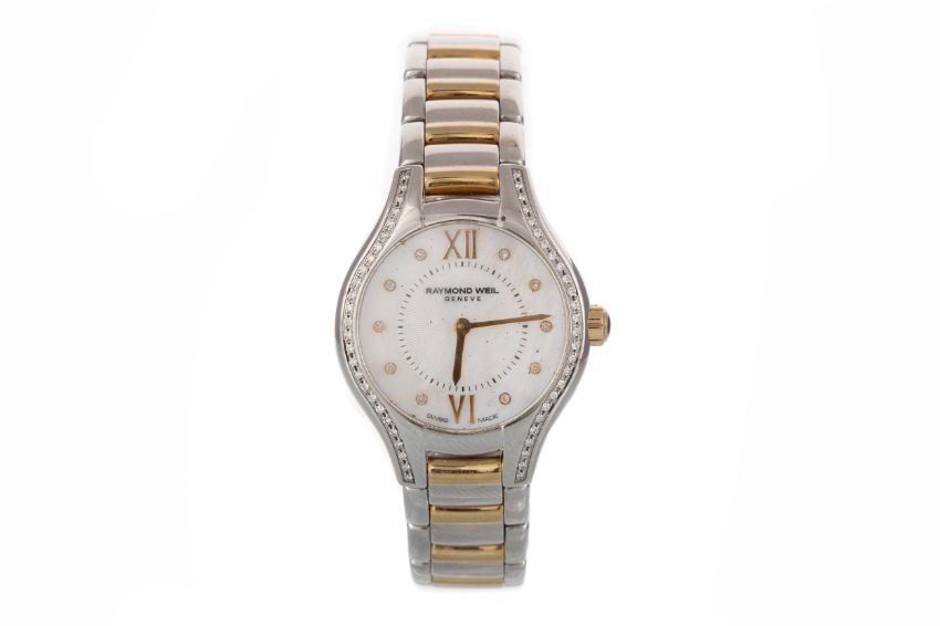the round dial with Arabic and dot hour markers, 23mm diamond set case, on a stainless steel bracelet, lacking box and papers MOVEMENT: Ticking at present. WEAR: Generally worn. DIAL: Dust specs and marks visible. CRYSTAL/ACRYLIC: Fair condition. HANDS & MARKERS: Intact. CROWN: Intact. BRACELET/STRAP: Worn.