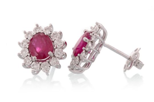 set with oval rubies with diamond halos, in eighteen carat white gold