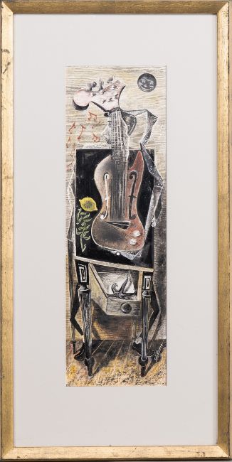 mixed media on board, signed, titled verso mounted, framed and under glass image size 49cm x 16cm, overall size 72cm x 36cm Note: John Byrne studied at both Edinburgh and Glasgow Schools of Art in the late 50s and early 60s. A superb painter and draughtsman, the multi-talented Byrne was also a first-class playwright (‘The Slab Boys’, ‘Tutti Frutti’), his ear for dialogue was as acute (and witty) as his eye for detail. Much of his subject matter in both disciplines is overtly autobiographical, he often included or refers to the Teddy Boy/Rock and Roll era of his youth. Byrne designed record covers for Donovan, The Beatles, Gerry Rafferty and Billy Connolly. His work is held in major collections in Scotland and abroad. Several of his paintings hang in The Scottish National Portrait Gallery in Edinburgh, the Museum of Modern Art and the Kelvingrove Art Gallery and Museum in Glasgow. The Fine Art Society, Edinburgh staged "John Byrne: In The Studio" in December 2024.