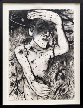 mixed media on paper, dated 1988 label verso mounted, framed and under glass image size 36cm x 39cm, overall size 68cm x 51cm Handwritten label verso Note: Artist born in Perth who studied at Duncan of Jordanstone College of Art in Dundee, 1982?7, and at Art Institute of Chicago, 1984. He was in The New Generation at Compass Gallery, Glasgow, 1986, in Figuration to a Degree at Paton Gallery, 1993, and in Paton Gallery at The Economist, 1994. Paton gave Guild a solo show later that year/early 1995, work which ?though its expression is streaked with Christian symbolism? was ?a vision of a pre-Fall world whose creatures of land, sea and air are undiminished by guilt?. Among Guild?s other solo shows was Choice Bread at Paton Gallery in 1997, stemming from the artist?s winning The Villiers David Award in 1995 which ?enabled me to experience Spanish painting and culture at first hand during a critical stage in the development of my work. ? Dundee City Art Gallery, Scottish Arts Council and several corporate collections hold examples.
