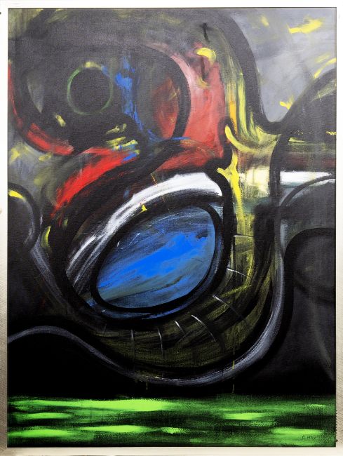 acrylic on canvas, signed, titled verso framed image size 123cm x 92cm, overall size 126cm x 95cm