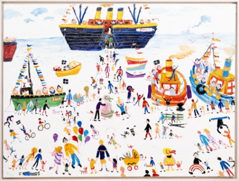 oil on canvas, signed, titled verso framed image size 76cm x 102cm, overall size 80cm x 105cm Note: Simeon Stafford was born in 1956 in Dukinfield, Greater Manchester and now lives in Cornwall. He met LS Lowry at the age of 14 who encouraged him to paint, but it wasn?t until his mid-forties that Simeon was able to follow his passion. His joyful work is a reflection of his personality and his love of characterful people and places. Visits to Dartmouth have inspired this new series of paintings. Armed with sketches, photographs and his own recollection, Simeon returned to his studio in Cornwall to create paintings that capture the soul of our location, often employing artistic licence to idealise a scene. A practiced eye will see the same characters appearing across Simeon?s paintings. Friends and relatives regularly appear, most notably Simeon?s aunt Dot doing a handstand with her dog Trixie. You might even find yourself in one of his canvases! Simeon?s paintings are held in private and public collections worldwide. Tatler Magazine has tipped Simeon as one of the next ?greats? in the art world. Hugh Grant, the Queen and several notable film directors own Simeon?s work.