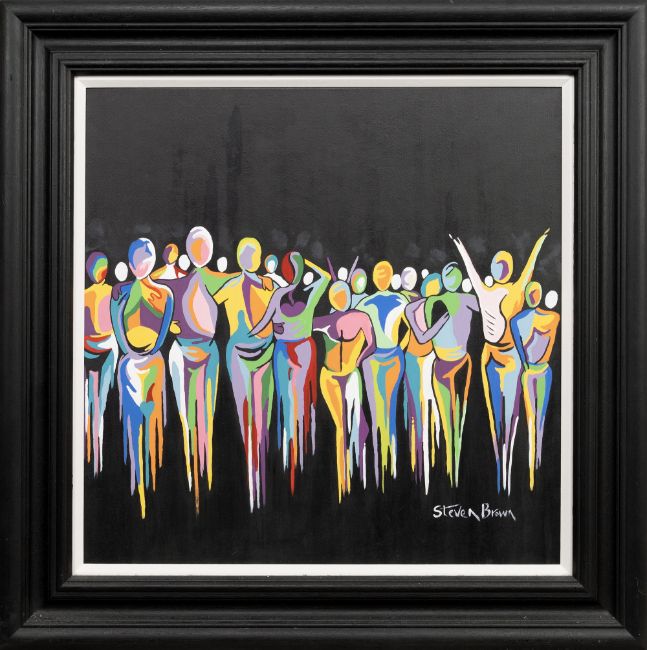 acrylic on board, signed framed and under glass image size 58cm x 58cm, overall size 80cm x 80cm Note: Steven Brown has become a household name over the last few years. Famous for his iconic 'McCoo', and other colourful paintings, his art delights a host of fans across the world as they agree that 'Life Feels Better with Colour'. Steven is a proud Scot and Steven Brown's art reflects his creativity, down-to-earth humour, and a powerful Scottish community spirit. His vision is that with imagination, belief and hard work, anything is possible, and he aims to give back wherever he can.