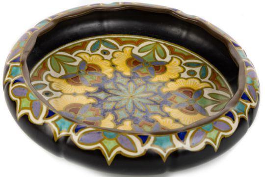 of circular form, decorated with flowers and foliage, marked to base 31.5cm wide