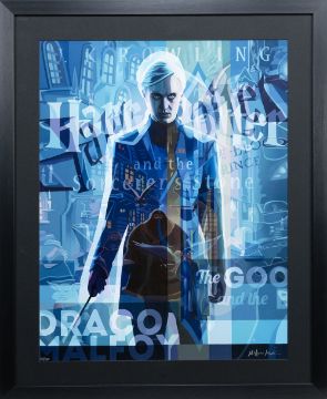 limited edition digital print on paper, signed in silver ink and numbered 43/100, from the Revelations : A Portrait of Magic Series mounted, framed and under glass image size 81cm x 63cm, overall size 101cm x 82cm Note: certificate of authenticity is included with this lot. Note 2: Scottish artist Stuart regularly hits the headlines with his Pop Art paintings. Fusing cartoons with themes of idealism and consumerism, his multilayered artworks blend the past with the present through layers of figurative imagery, text and symbols. His release, Revelations: A Portrait of Magic, depicts the central characters of J.K. Rowling's Harry Potter series. Stuart's McAlpine Miller’s spectral style has been described as ‘supernatural realism’ by the BBC and Radio 2 art critic Estelle Lovatt, who also praised its 4D aesthetic, adding that he has “one of the most creative minds in art today”. Using subtle tones of paint, he creates the illusion of transparency. The overall effect is similar to looking through a glass bottle, distorting the image and presenting a different version of the same subject. In turn, a far-fetched reality is created, highlighting the unrealistic expectations of today’s society. A graduate of the prestigious Glasgow School of Art, Stuart is an admirer of Old Masters such as Caravaggio and Hieronymus Bosch but is particularly inspired by one of the leading exponents of Pop Art, Andy Warhol. Stuart says: “Warhol’s views on mass consumerism and the way he translated these into his art is something I really relate to. I hope my art does something similar and stands the test of time.” Inspired by JK Rowling's Harry Potter novels, Stuart’s Revelations: A Portrait of Magic collection has captured best-loved characters including Harry Potter, Ron Weasley, Hermione Granger, Albus Dumbledore, Draco Malfoy and Bellatrix Lestrange. Stuart says: “The art of illusion and magic reveals itself through the unified bond of the three central characters. As we continue to work in unison, we open the doors to an unimagined future, turning the ordinary into the extraordinary. A new era lies ahead, as yet unrecognised but already awaiting our arrival.” In 2011, Stuart was chosen as artist-in-residence by the world-famous Savoy hotel after its major refurbishment. During his time there, he produced the collection A Time For Reflection: The Savoy Suite, which offered a unique insight into the hotel's patron, including Alfred Hitchcock, Marilyn Monroe and Charlie Chaplin. This popular release for Castle Fine Art was followed by Lost Lives/Split Personalities, which depicted some of history's most famous musicians including David Bowie, Amy Winehouse, Freddie Mercury and George Michael. Music took on a new meaning for Stuart when he began playing the piano seriously. Stuart says: “Music has for me, like many others, greatly influenced my own approach to my art, and the potential it creates within. The emotion that music can reveal allows the listener to transport themselves to a time, a place and a feeling. Art can do the same. We just have to open our minds.” The piano and art took on a new significance for Stuart when he was commissioned by Paul McCartney to paint the piano which he used on his 2004 European Tour. Stuart’s talents also saw him work on several advertising campaigns including Renault, McVities and Virgin; he also painted a triptych of The Alternative Last Supper used as backdrop for the main dining scene in Stephen Berkoff’s 1998 film Decadence. Stuart McAlpine Miller has commissions and collectors around the world, and has exhibited internationally, including Connaught Brown, the Catto Gallery, Kings Road Gallery, Rebecca Hossack Gallery and Duncan Miller in London; Ruth O'Hara and Hoerle-Guggenheim in New York and the SOTA Gallery, Hong Kong, as well as through the Castle Fine Art network of galleries in the UK.