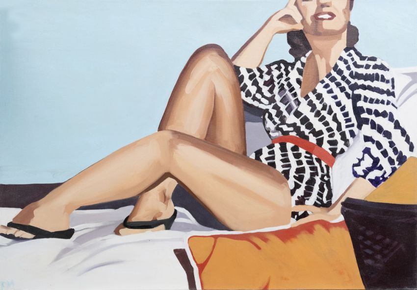oil on canvas, signed, titled verso unframed overall size 70cm x 100cm Note: Ruth Mulvie is a contemporary fine artist, known for her vivid palette and for the delightfully unexpected detail in her paintings. She graduated from the Glasgow School of Art and over the years comparisons have been made with Hockney. She cherishes that visceral connection that Kodachrome™ gives us with our past. That single moment frozen in time that one can look at forever. Old photographs are her initial inspiration for each new piece; a digital springboard atop which she dives into her latest delicious fantasy landscape. "Mulvie’s colour choices yell and fizz. They quicken the heartbeat. Sherbet yellow next to candy pink or lime green besides turquoise, they all elevate the mood. In her paintings we are invited to join the most wonderful party or shared experience. Mulvie’s realms surprise and delight. Hers are playful, glamorous worlds with pure glee for oxygen. And in each we are granted a day in happy valley. At the heart of Mulvie’s pieces is the palpable joyfulness in her response to colour. She is at her happiest when mixing and combining paint, waiting for the thrill of the perfect shade. For her, colour is emotion, colour is memory, colour is her favourite place to be. And we are all invited. There’s no place like it." Julie Tellouche